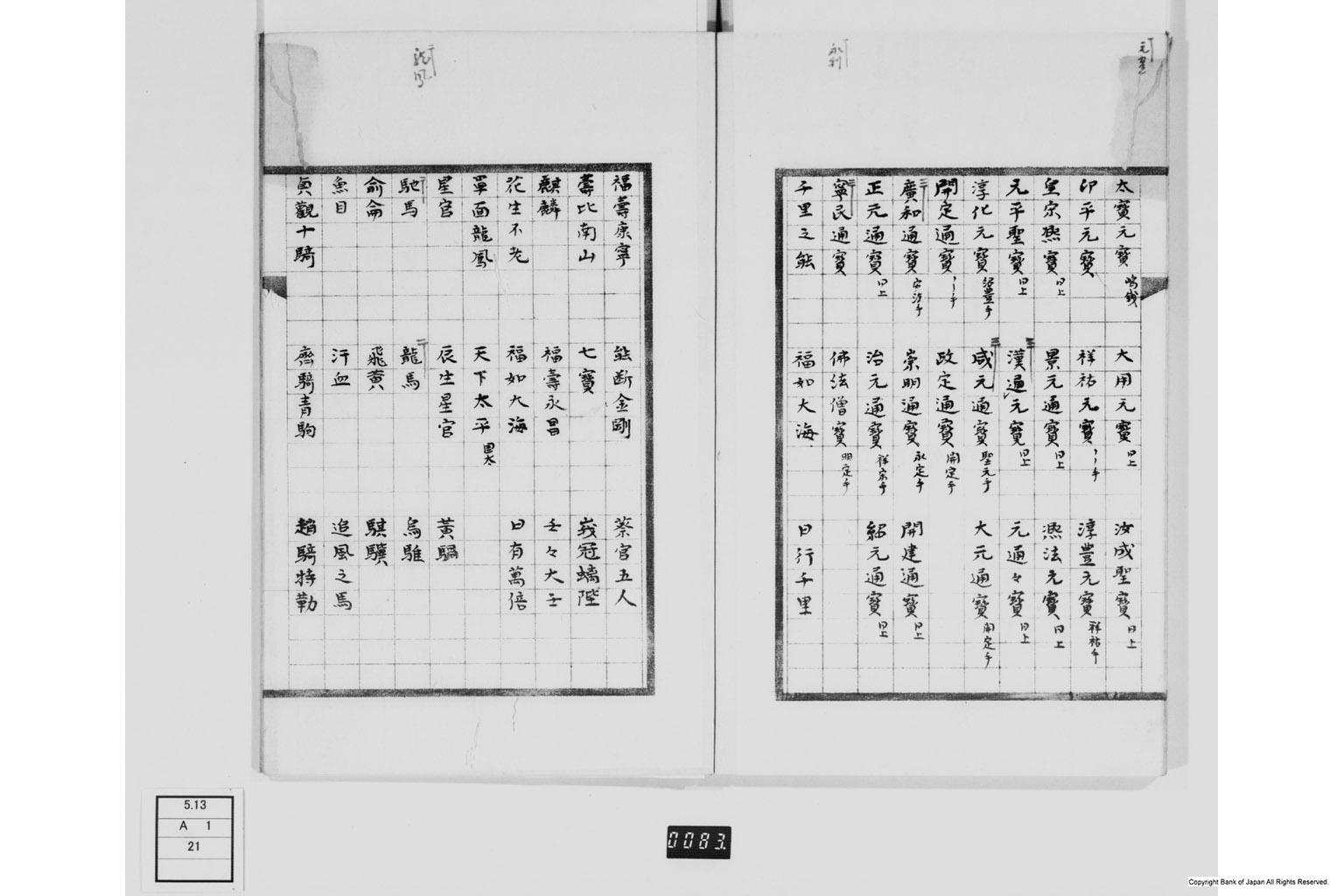 明治新撰泉譜別集名面品目